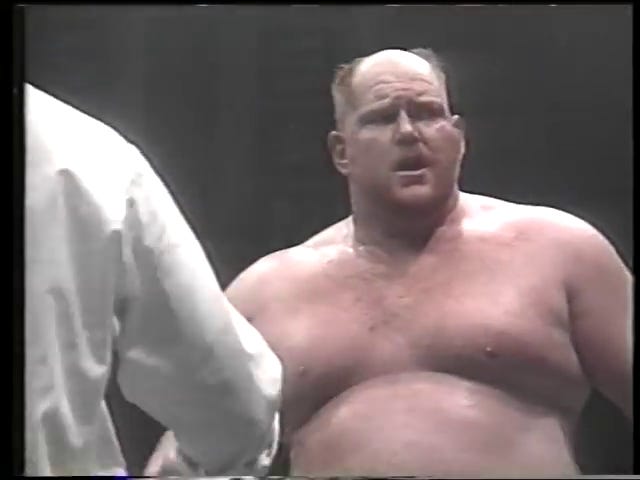 The 1989 bout between Big Van Vader (working as Bull Power) and Otto Wanz illustrates this dynamic perfectly.