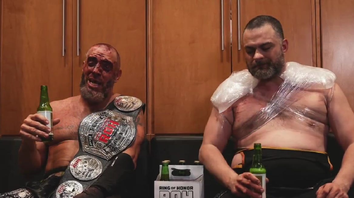 [Colette here! In my station as the publicist at Merge Records, I asked Ian if he’d contribute to our yearly tradition of staff/artists/friends’ EOTY list. He agreed, then turned in a full-length essay about his year behind the desk at ROH, AEW, and NJPW Strong, which was the last thing I expected. With his permission, I’m sharing it with y’all — have fun, and happy holidays!]