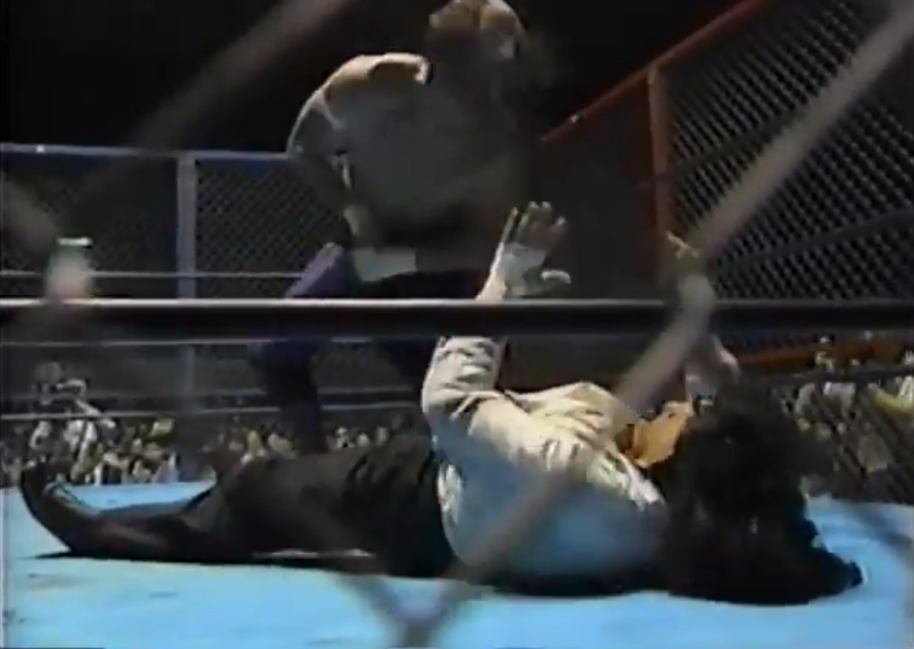 Sometimes it's as easy as saying "if we're doing a horror month, we need to watch a W*ING Monster match," then immediately seeing one where Leatherface and Terry Funk wrestled in a steel cage. I hadn't seen it, Joseph hadn't seen it, so why not? The worst thing that could happen, writing about a match like this, is that there actually wouldn't be much to write about, that it'd just be a wrestling match, and that's what we got.